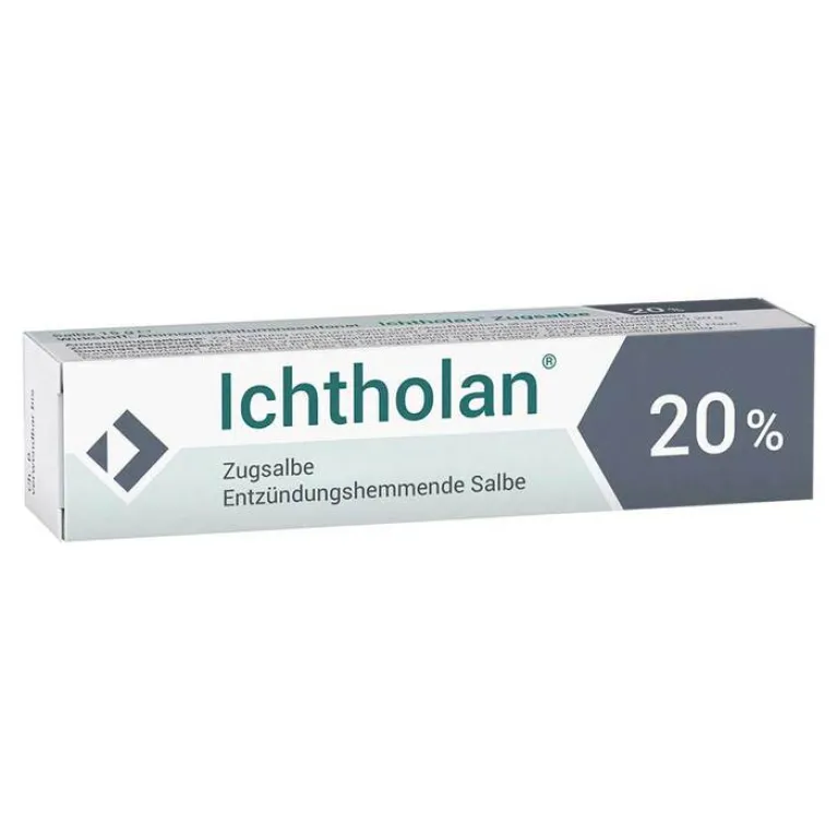 Ichtholan® Zugsalbe 20%. Wirkstoff: Ammoniumbituminosulfonat Anwendungsgebiete: Zur Reifung von Furunkeln und oberflächlich abszedierenden Prozessen, z. B. Nagelbett-, Haarbalg-, Schweißdrüsen-Entzündungen, Entzündungen durch Splitter und Dornen. Enthält Wollwachs und Butylhydroxytoluol. Zu Risiken und Nebenwirkungen lesen Sie die Packungsbeilage und fragen Sie Ihre Ärztin, Ihren Arzt oder in Ihrer Apotheke. Ichthyol-Gesellschaft Cordes, Hermanni & Co. (GmbH & Co.) KG, 22335 Hamburg