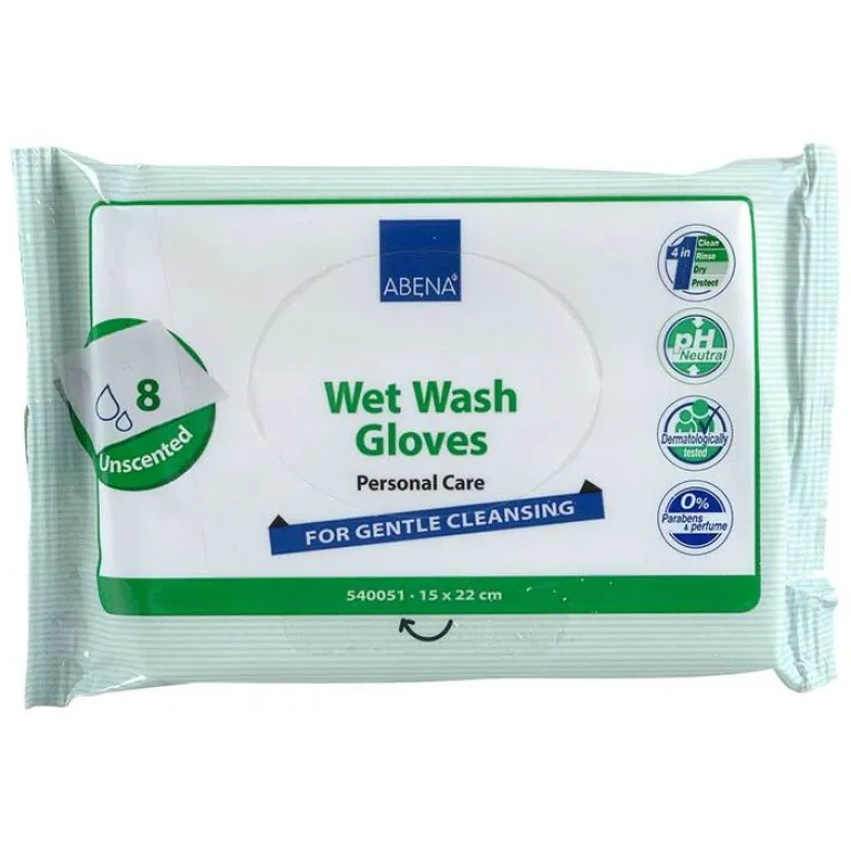 Abena feuchte Einmalwaschhandschuhe ohne Parfüm, 8 St- Waschhandschuh
