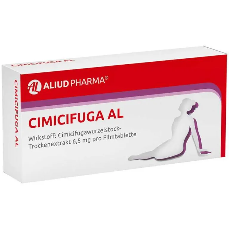 CIMICIFUGA AL Cimicifugawurzelstock-Trockenextrakt 6,5 mg pro Filmtablette. Wirkstoff: Cimicifugawurzelstock-Trockenextrakt. Zur Besserung von Beschwerden, bedingt durch die Wechseljahre. Hinweis: Bei Störungen bzw. Wiederauftreten der Regelblutung sowie bei anhaltenden, unklaren oder neu auftretenden anderen Beschwerden sollte ein Arzt aufgesucht werden, da es sich um Erkrankungen handeln kann, die der Abklärung durch den Arzt bedürfen. Enthält Lactose. Zu Risiken und Nebenwirkungen lesen Sie die Packungsbeilage und fragen Sie Ihre Ärztin, Ihren Arzt oder in Ihrer Apotheke. ALIUD PHARMA® GmbH, Postfach 1380, 89146 Laichingen. Stand: September 2020