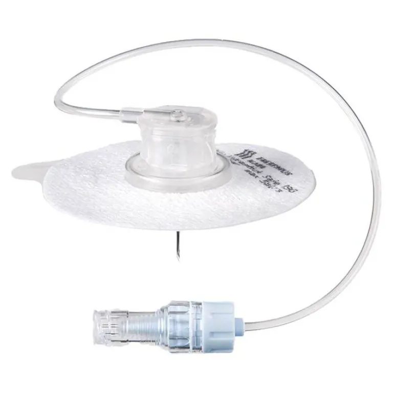 - Sicherung der Portkanülenposition durch integriertes Klebeadhäsiv