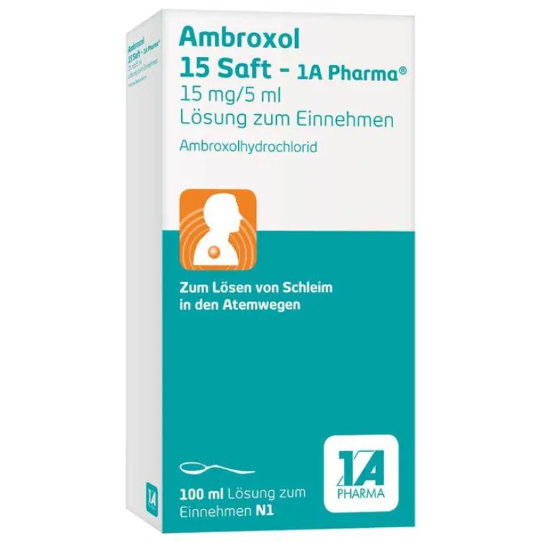Ambroxol 15 Saft – 1A Pharma®: Wirkstoff: Ambroxolhydrochlorid. Anwendungsgebiete: Zur schleimlösenden Behandlung bei akuten und chronischen Erkrankungen der Bronchien und der Lunge mit zähem Schleim. Warnhinweis: Enthält Natriummetabisulfit, Sorbitol, Benzylalkohol, Benzoesäure, Ethanol. Zu Risiken und Nebenwirkungen lesen Sie die Packungsbeilage und fragen Sie Ihre Ärztin, Ihren Arzt oder in Ihrer Apotheke. ! Mat.-Nr.: 2/51012272 Stand: Januar 2019. 1 A Pharma GmbH, Keltenring 1 + 3, 82041 Oberhaching