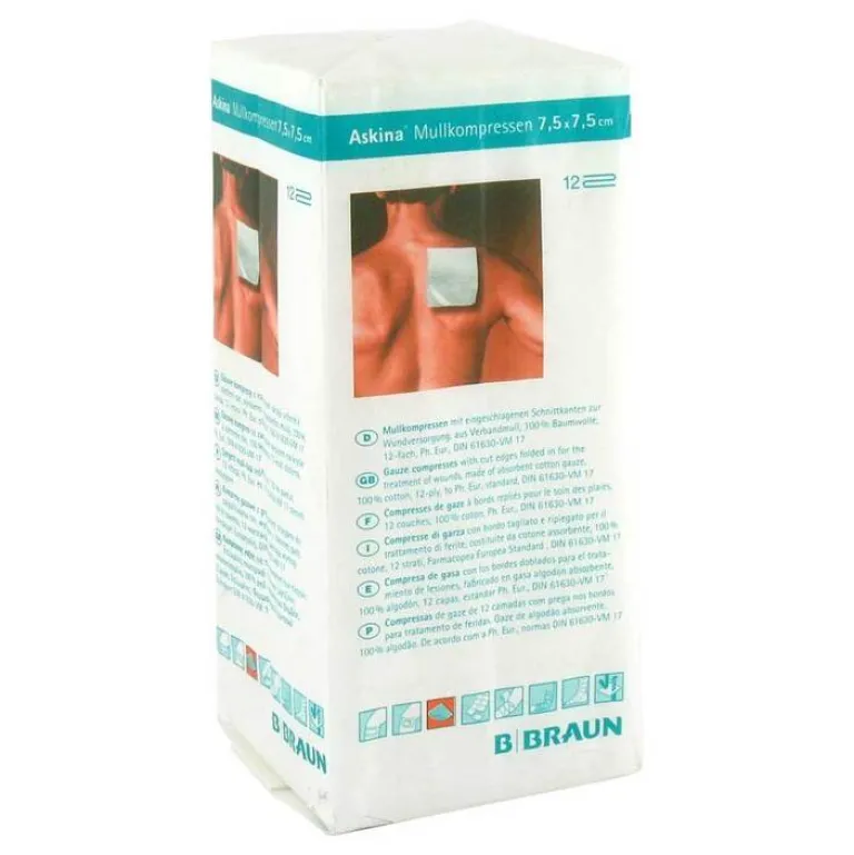 Askina Sterile Kompressen-Mullkompressen 7,5×7,5 cm unsteril 12fach, 100 St