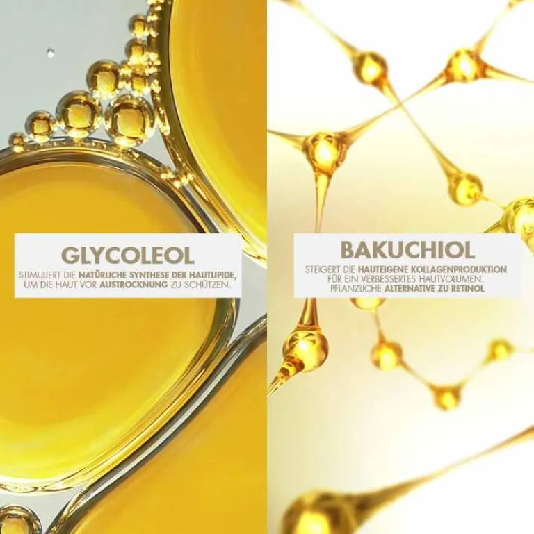 - Bakuchiol (1,5%): Steigert die hauteigene Kollagenproduktion für ein verbessertes Hautvolumen.