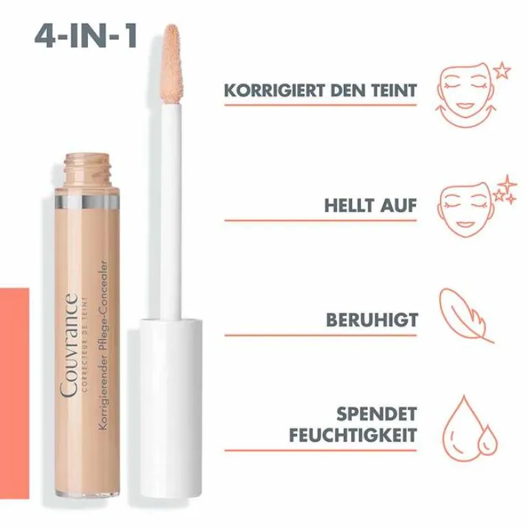 Der Couvrance Pflege-Concealer ist wasser- und schweißbeständig. Seine Textur ist leicht und cremig, ohne zu kleben. Zudem weist der Concealer eine hohe Verträglichkeit auf und ist dermatologisch getestet.