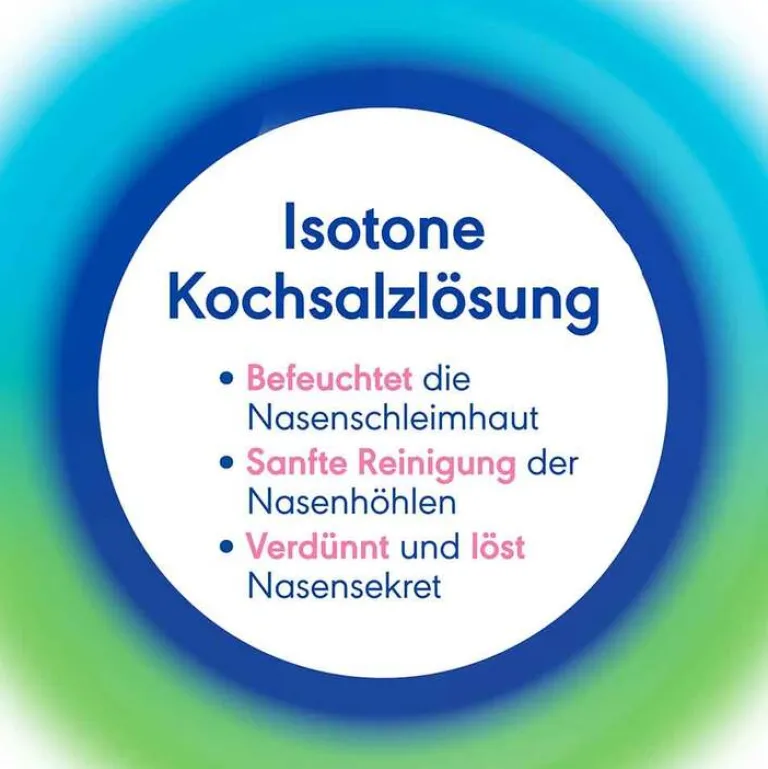 Reinigt Nasenhöhlen, befeuchtet Nasenschleimhaut, verdünnt und löst Nasensekret