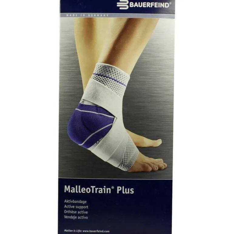 Die MalleoTrain Plus Bandage dient der Unterstützung und Stabilisierung des Sprunggelenks. Durch jede Bewegung massieren die beiden Pelotten am Innen- und Außenknöchel das Sprunggelenk und bewirken so eine bessere Durchblutung in diesem Bereich. Dadurch werden Schmerzen gelindert und Schwellungen können schneller abklingen. Zum Wirkmechanismus der Bandage kommt das System des Sport-Tapings. Das teilelastische Gurtsystem bietet durch seine besondere Form die einem Tapeverband ähnliche stabilisierende Wirkung.