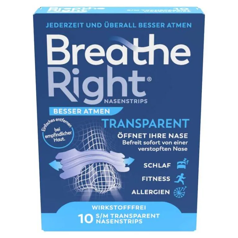 Besser Atmen Breathe Right Nasenpflaster normal transparent , 10 St- Schnupfen & Nasennebenhöhlen