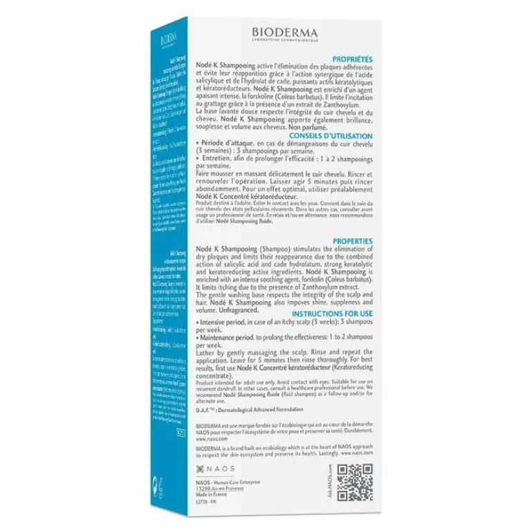 Das milde Anti-Schuppen-Shampoo Node K von Bioderma hilft effektiv bei wiederkehrenden, hartnäckigen, trockenen Schuppen mit Juckreiz. Es ist ideal bei zu Psoriasis (Schuppenflechte) neigender Kopfhaut. Schuppenkrusten werden gelöst und deren Neubildung wird vorgebeugt.