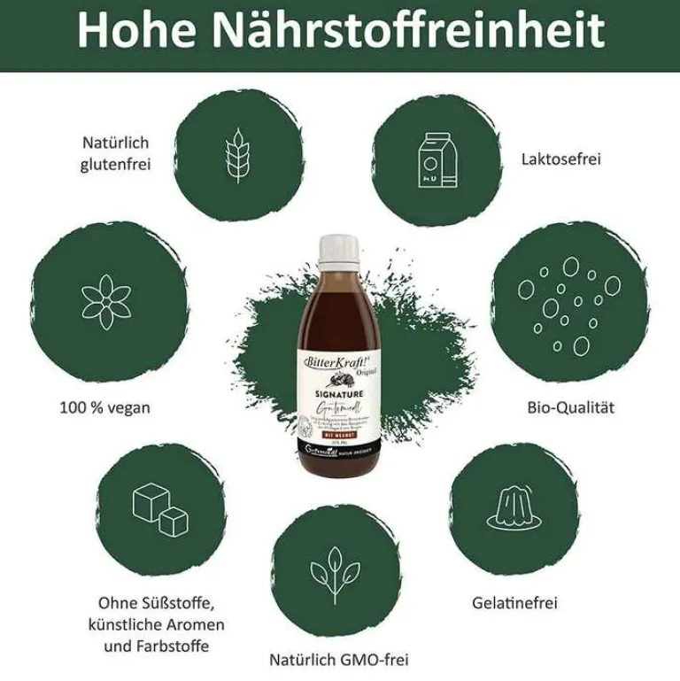 Die Signatur Edition von Bitterkraft enthält sorgsam abgestimmte Bitterkräuter in Einklang mit den Rezepturen der Hildegard von Bingen verfeinert mit Wermut.