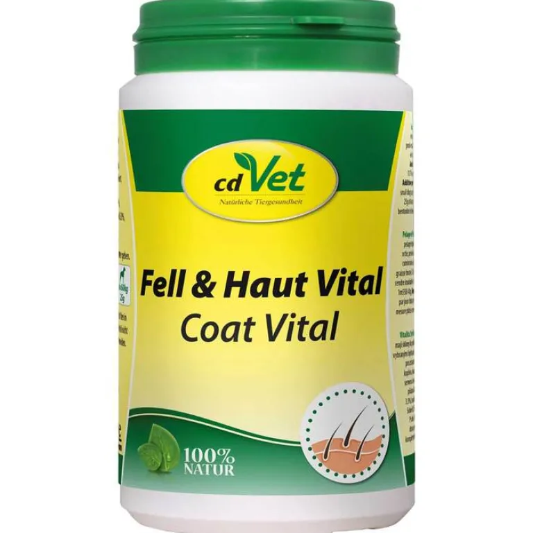 Fell & Haut Vital ist ein rein natürliches Ergänzungsfuttermittel zur intensiven Unterstützung des Organismus bei stumpfen und trockenem Fell, Haarbruch und -verlust, Schuppen und anderen Hautirritationen, die oft Folgen von Stress und Mangelsituationen, sowie Belastungen durch synthetische Stoffe sind. Fell & Haut Vital besteht aus speziellen Kräutern, Hefen, essentiellen Fettsäuren, Mikronährstoffen, Spurenelementen und Vitaminen, die dabei helfen ernährungsbedingte Defizite auszugleichen und somit für eine optimale Kondition der Entgiftungsorgane sorgen.