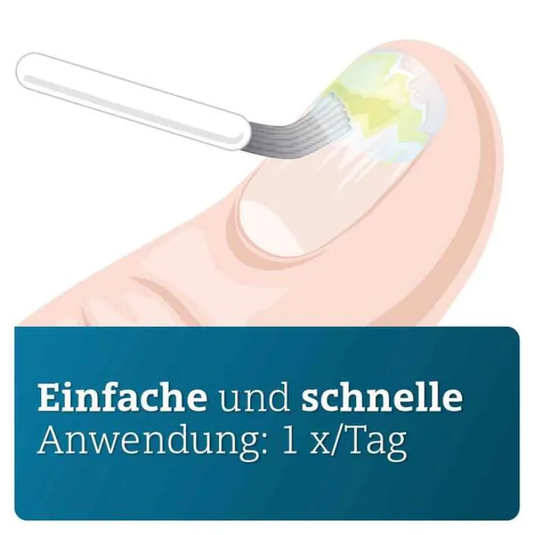 Sofern nicht anders verordnet, wird der Nagellack einmal täglich, vorzugsweise abends, als dünne Schicht auf alle betroffenen Nägel aufgetragen.