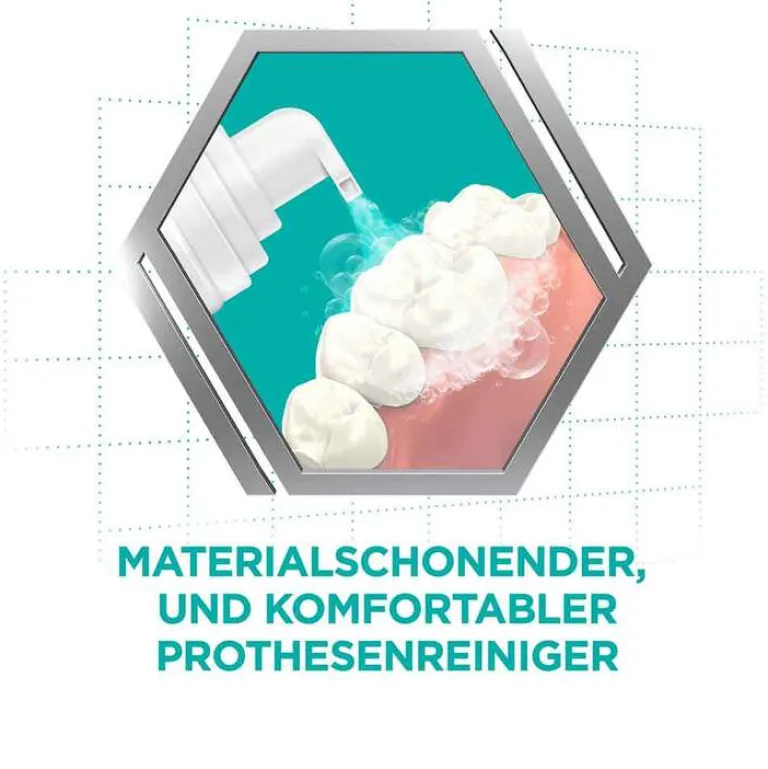 Gut zu wissen: Da Zahnersatz etwa 10 mal weicher als natürliche Zähne ist, sollten Sie Ihre Prothese mit COREGA Reiniger anstelle einer Zahnpasta reinigen. Herkömmliche Zahnpasta enthält Schleifstoffe, die die weichere Prothesenoberfläche zerkratzen können. In den Kratzern können Bakterien wachsen, die einen unangenehmen Geruch verursachen können.