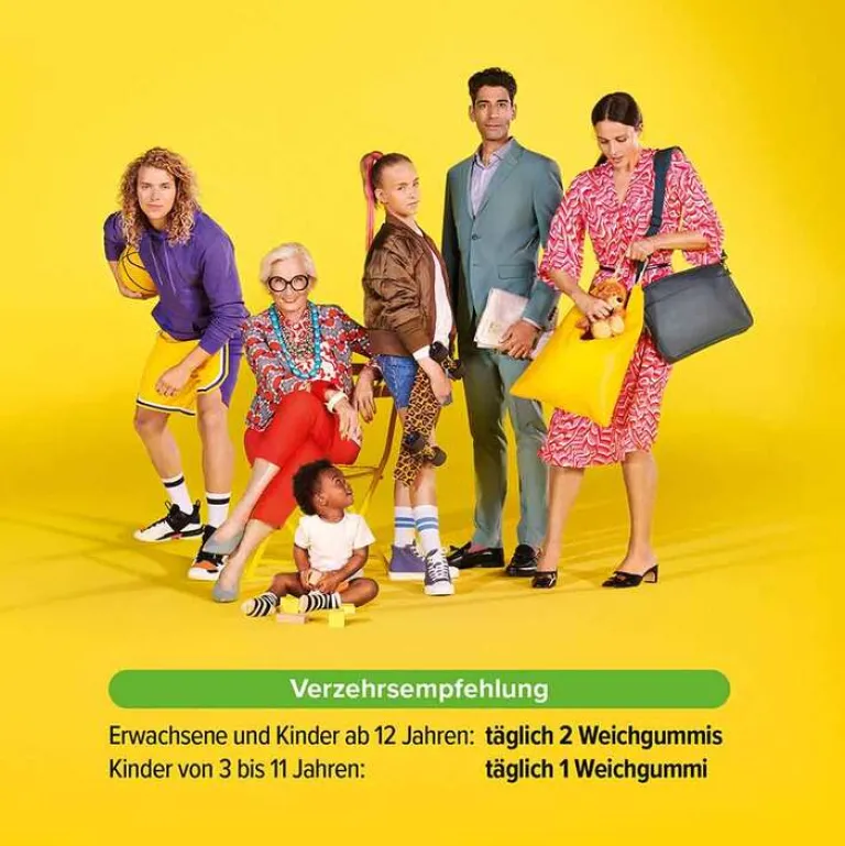 Erwachsene und Kinder ab 12 Jahren können täglich bis zu 2 Weichgummis verzehren.