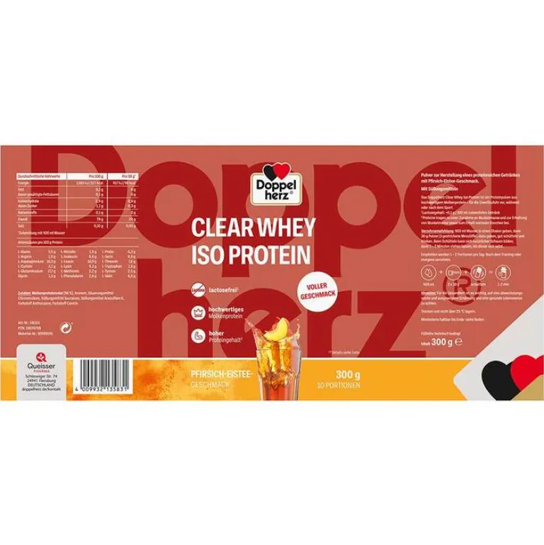 Doppelherz Clear Whey Iso Protein Pfirsich-Eistee, 300 g- Eiweiß