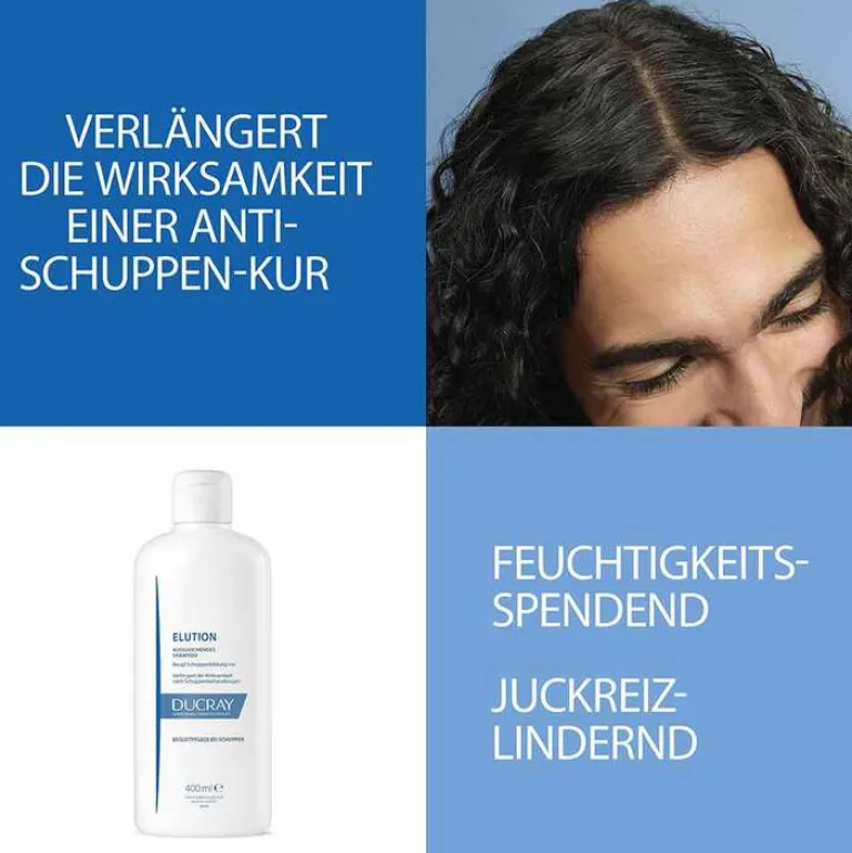 Elution Anti-Schuppen Begleitpflege-Shampoo von Ducray ist eine effektive Begleitpflege zur täglichen Anwendung nach oder im Wechsel mit Anti-Schuppen-Behandlungen wie Kelual DS (bei seborrhoischem Ekzem oder Kleienpilzflechte) oder Kertyol P.S.O. (bei Psoriasis).