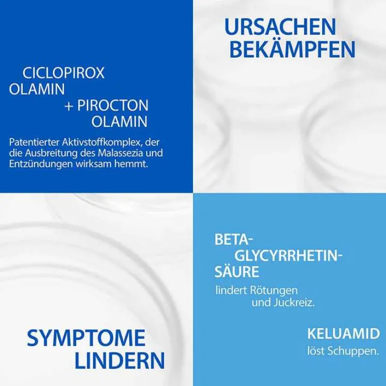 Die Kelual DS Anti-Schuppen Creme entfernt dank der patentierten Aktivstoff-Kombination aus Ciclopirox Olamin + Pirocton Olamin effektiv Schuppen im Gesicht und beugt Rückfällen 6 Wochen* lang vor.
