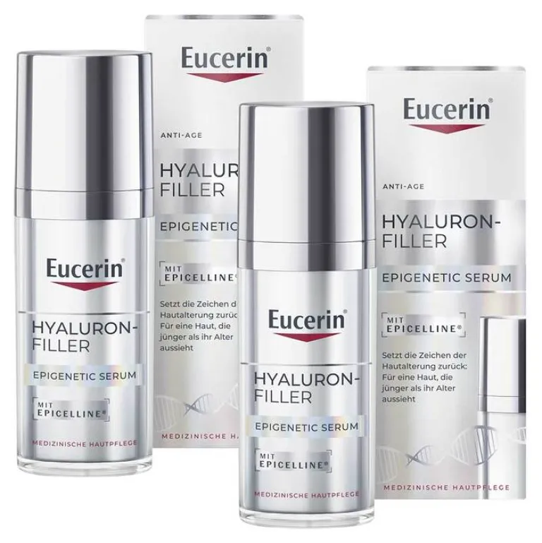 Das Eucerin Hyaluron-Filler Epigenetic Serum ist eine Hyaluron Gesichtspflege, die für straffe Gesichtshaut sorgt, feine Linien reduziert und hilft, die Haut jünger aussehen zu lassen. Das Serum fürs Gesicht enthält den von Eucerin entdeckten Wirkstoff Epicelline®, der die Jugendgene der Haut reaktiviert und die Aktivität der Hautzellen verjüngt.