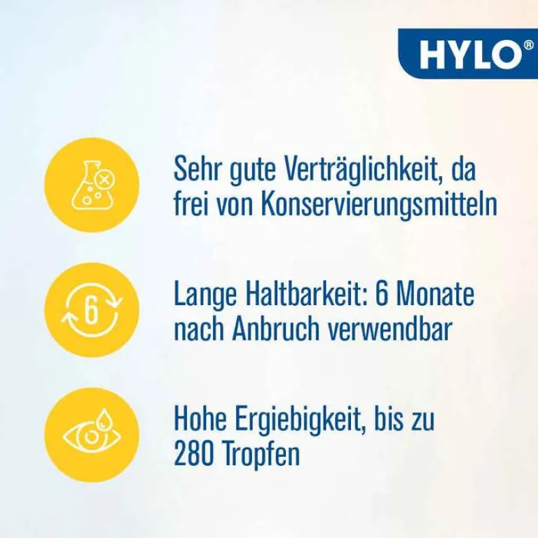 - Lindert das Trockenheitsgefühl am Auge, tränende und brennende Augen