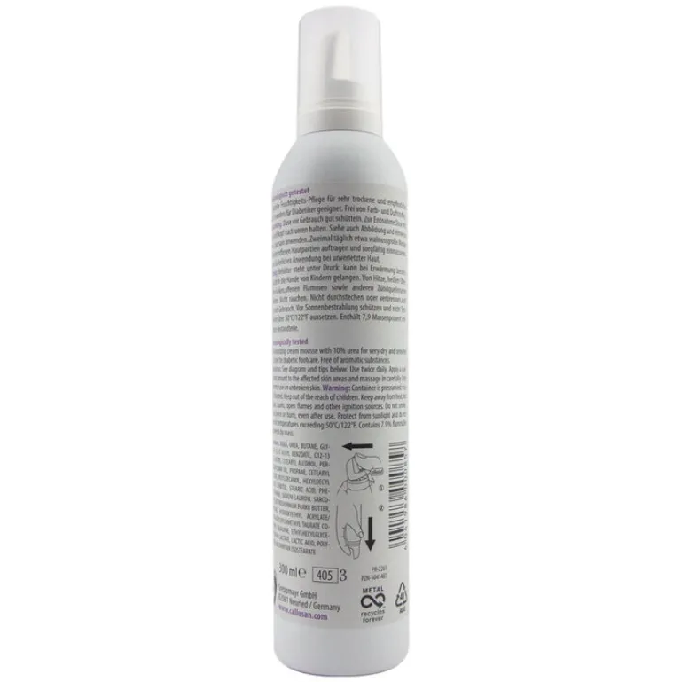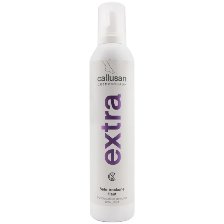 Callusan Extra Schaum ist mit 10% Urea. Der Schaum reguliert den Feuchtigkeitsausgleich auch in tieferen Hautschichten. Die enthaltene Stearinsäure schützt zusätzlich vor Umwelteinflüssen und sorgt für eine ausgewogene Rückfettung. In ihren natürlichen Reserven wird die Haut nachhaltig versorgt und ergänzt. Callusan Extra Schaum ist frei von Duft- und Farbstoffen und für Diabetiker besonders geeignet.
