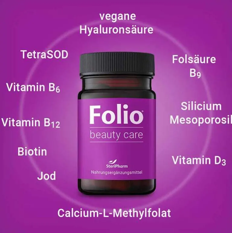 Folio beauty care ist ein Nahrungsergänzungsmittel mit einer wissenschaftlich fundierten Zusammensetzung hochwertiger Inhaltsstoffe.