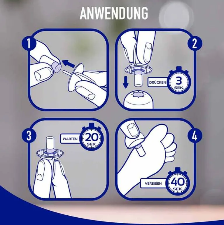 - Unkomplizierte Anwendung in ca. 1 Minute bei Fußwarzen