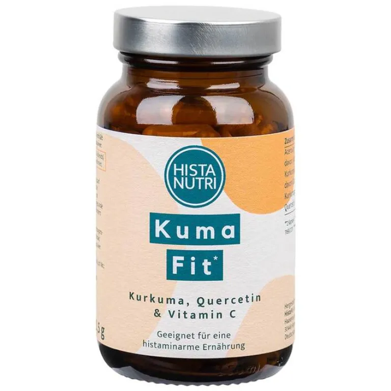 Histanutri KumaFit enthält Kurkuma, Quercetin & natürliches Vitamin C aus Acerola. Die Kapseln sind ohne Piperin. Quercetin erhöht laut Studien die Bioverfügbarkeit.