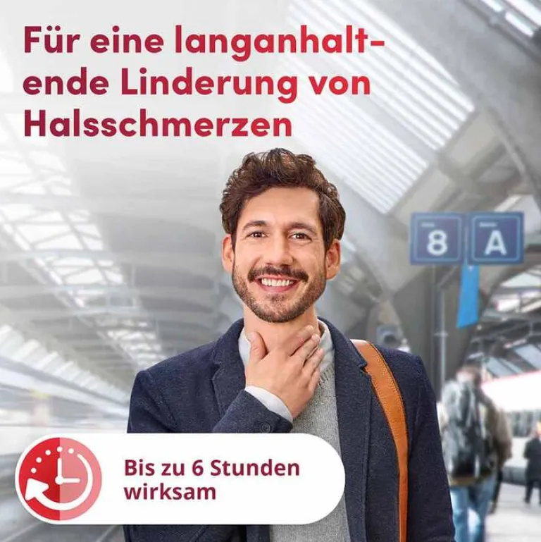 Das Spray wirkt ab 5 Minuten nach der Anwendung und kann bis zu 6 Stunden von starken Halsschmerzen befreien – auch ideal für unterwegs.