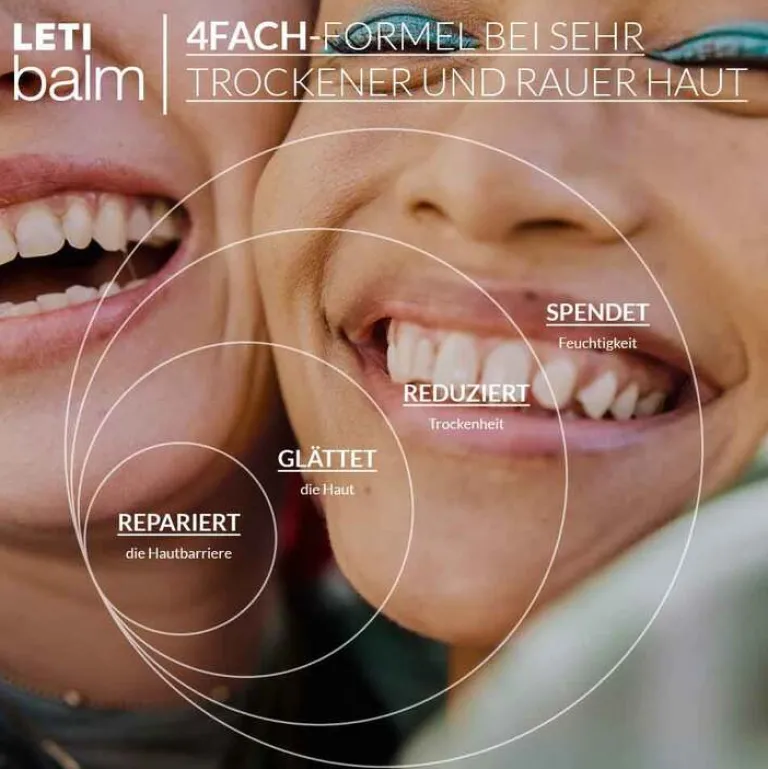 Zahlreiche äußere und innere Faktoren können zu einer geschwächten Hautbarriere beitragen, etwa Genetik, Alter, Stress, UV-Strahlung und Heizungsluft. Die Folge ist eine sehr trockene, raue oder strapazierte Haut am ganzen Körper. Hier setzen die hocheffektiven LETI balm-Produkte an. Sie spenden Feuchtigkeit, reparieren die Hautbarriere und schützen die Haut langfristig. LETI balm bietet eine effektive und langanhaltende Rundum-Pflege für geschmeidige Haut von Kopf bis Fuß für Kinder und Erwachsene.