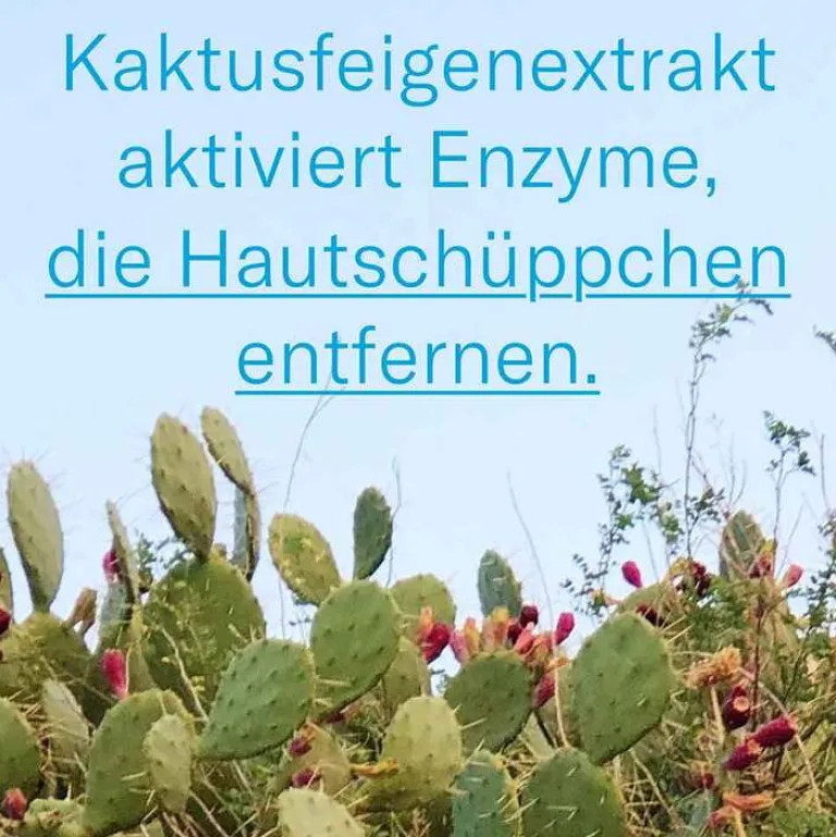 - Kaktusfeigenextrakt erhöht die Aktivität von Enzymen, die sichtbare Hautschüppchen entfernen.
