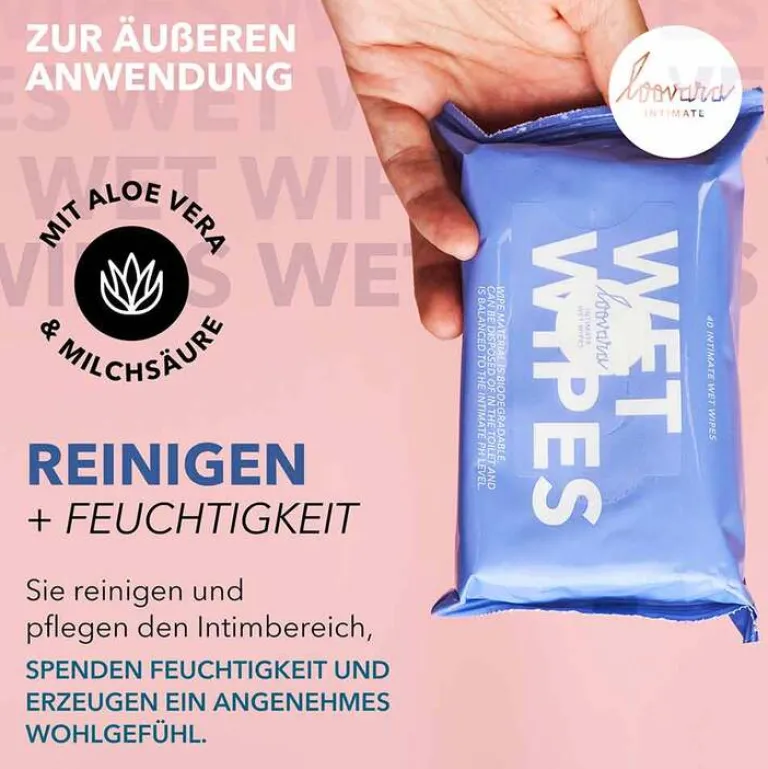 Wet Wipes: Die Loovara Intimate Wipes mit Aloe Vera sind ideal für die spontane Reinigung im Intimbereich. Die Wipes reinigen und pflegen den Intimbereich und spenden Feuchtigkeit für ein angenehmes Wohlbefinden.