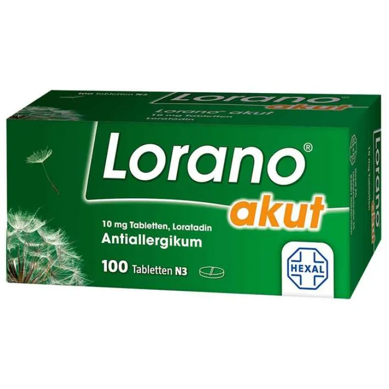Lorano® akut, 10 mg Tabletten: Lorano® akut, 10 mg Tabletten Wirkstoff: Loratadin. Anwendungsgebiete: Zur Behandlung der Beschwerden bei allergischen Entzündungen im Inneren der Nase, z. B. Heuschnupfen, und bei chronischer Nesselsucht unbekannter Ursache. Warnhinweis: Enthält Lactose. Zu Risiken und Nebenwirkungen lesen Sie die Packungsbeilage und fragen Sie Ihre Ärztin, Ihren Arzt oder in Ihrer Apotheke! Mat.-Nr.: 2/51012340-02 Stand: Mai 2018 Hexal AG, 83607 Holzkirchen, www.hexal.de