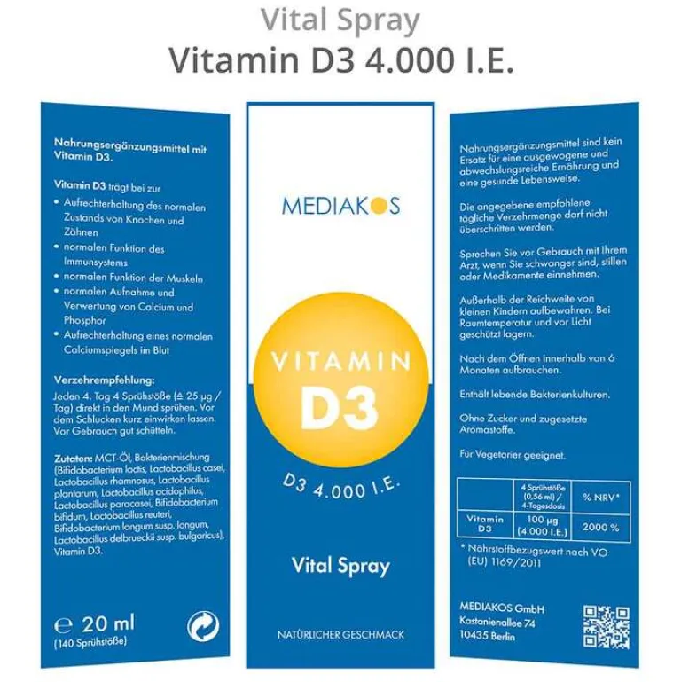 Mediakos Vitamin D (Colecalciferol)-Vitamin D3 4000 I.E. Vital Spray, 20 ml