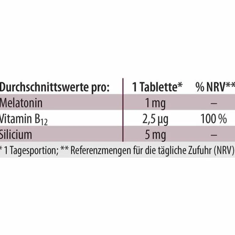 Zusätzlich wird durch das in Melatonin B12 enthaltene Vitamin B12 (als Methyl-B12) die normale Funktion des Nervensystems und der Psyche unterstützt.