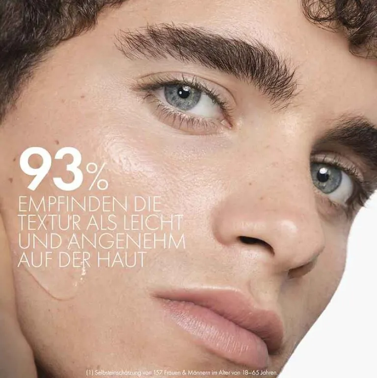 Sofort-Effekt: Die Haut fühlt sich glatter (85%) und gesünder (81%) an. Nach einem Monat: Die Haut sieht strahlender aus (94%), mit einer gesunden Ausstrahlung (87%) und wirkt aufgepolstert (83%).