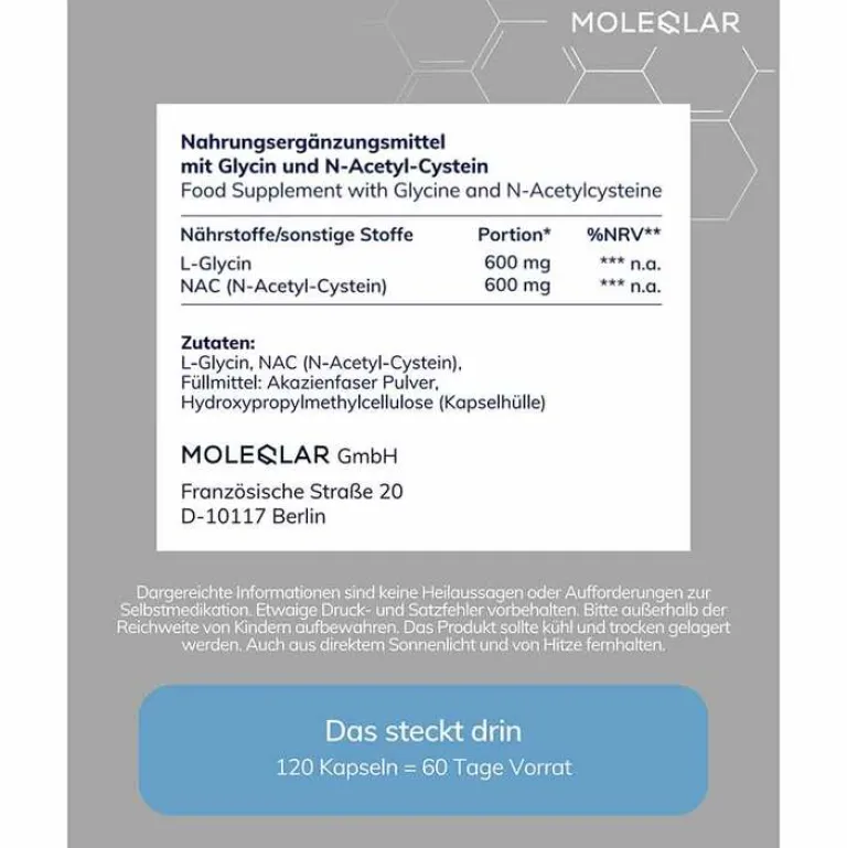 Moleqlar Aminosäuren-Glynac Glycine & N-Acetylcysteine Kapseln, 120 St