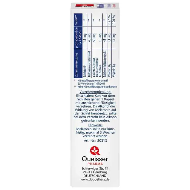 Melatonin ist ein natürlicherweise vorkommendes Hormon, das von der Zirbeldrüse im Zwischenhirn gebildet wird. Die Kapseln von Doppelherz enthalten zusätzlich L-Theanin aus Grünteeextrakt in Kombination mit Extrakten aus Baldrianwurzel und Melissenblättern. Grüner Tee ist für seinen Gehalt an L-Theanin bekannt.
