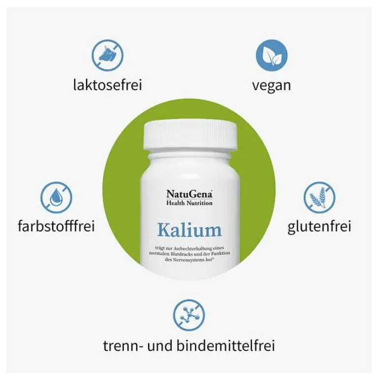 * Kalium trägt zu einer normalen Funktion des Nervensystems bei, Kalium trägt zu einer normalen Muskelfunktion bei, Kalium trägt zur Aufrechterhaltung eines normalen Blutdrucks bei.