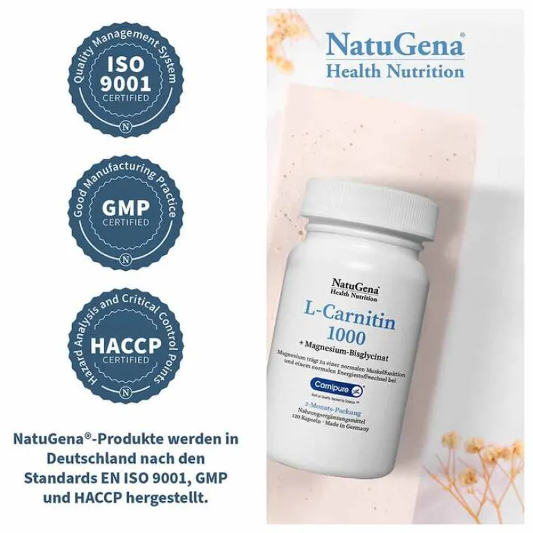 Be the first to review “Natugena L-Carnitin|Carnitin-L-Carnitin 1000 Carnipure + Magnesium vegan Kapseln, 120 St” Antworten abbrechen