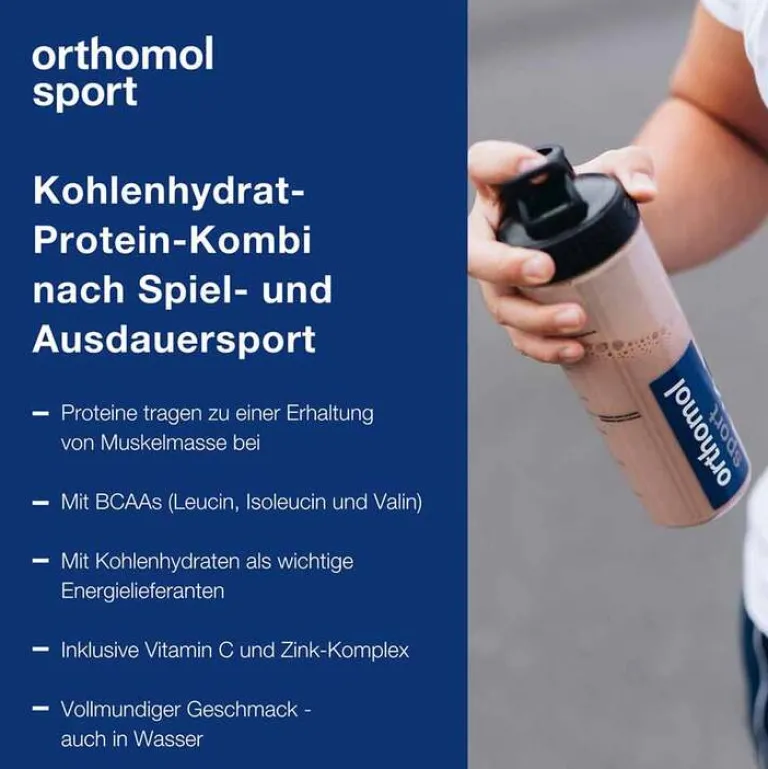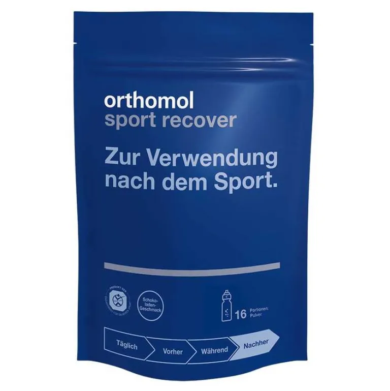 Orthomol Sport Recover unterstützt mit einer zielgerichteten Kombination aus Kohlenhydraten und Proteinen aus tierischen und pflanzlichen Quellen sowie BCAAs (englisch: branched-chain amino acids; deutsch: verzweigtkettige Aminosäuren).