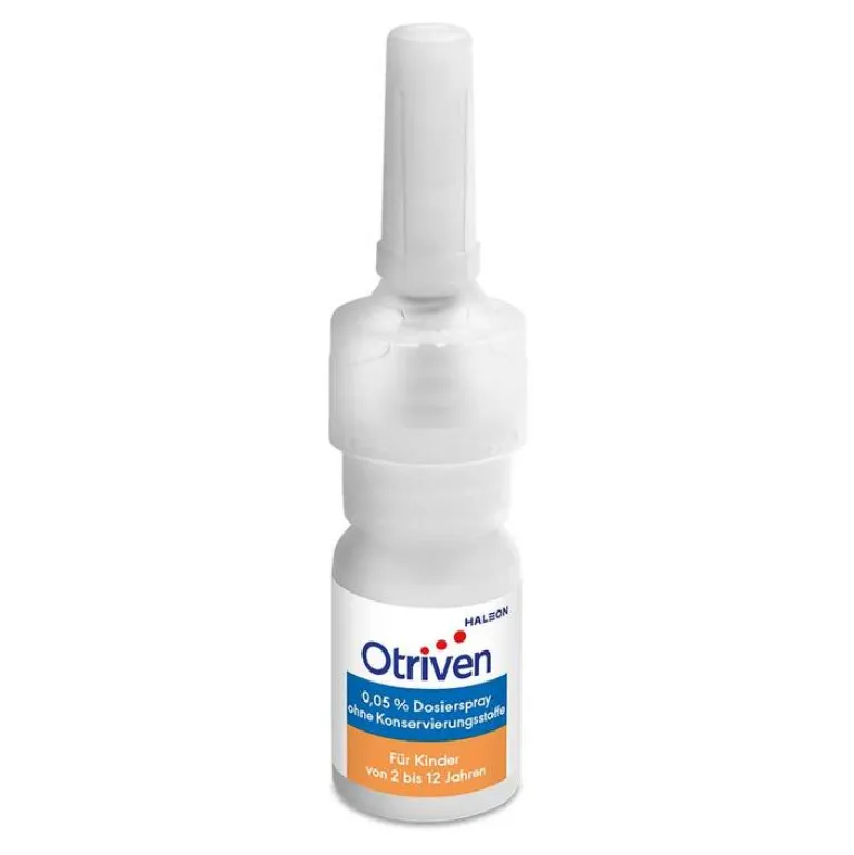 Otriven 0,05 % Dosierspray ohne Konservierungsstoffe Wirkstoff: Xylometazolinhydrochlorid 0,5 mg/ml. Anwendungsgebiete: Für Kinder von 2 bis 12 Jahren: Zur Abschwellung der Nasenschleimhaut bei Schnupfen, anfallsweise auftretendem Fließschnupfen (Rhinitis vasomotorica), allergischem Schnupfen (Rhinitis allergica). Zur Erleichterung des Sekretabflusses bei Entzündung der Nasennebenhöhlen sowie bei Katarrh des Tubenmittelohrs in Verbindung mit Schnupfen. Apothekenpflichtig. Stand: 01/2024. Zu Risiken und Nebenwirkungen lesen Sie die Packungsbeilage und fragen Sie Ihre Ärztin, Ihren Arzt oder in Ihrer Apotheke.