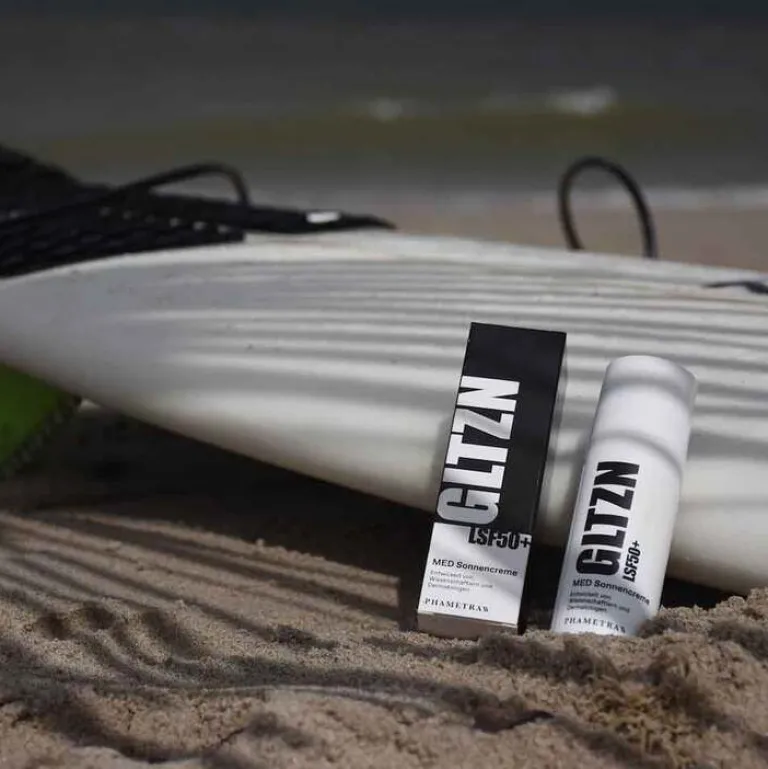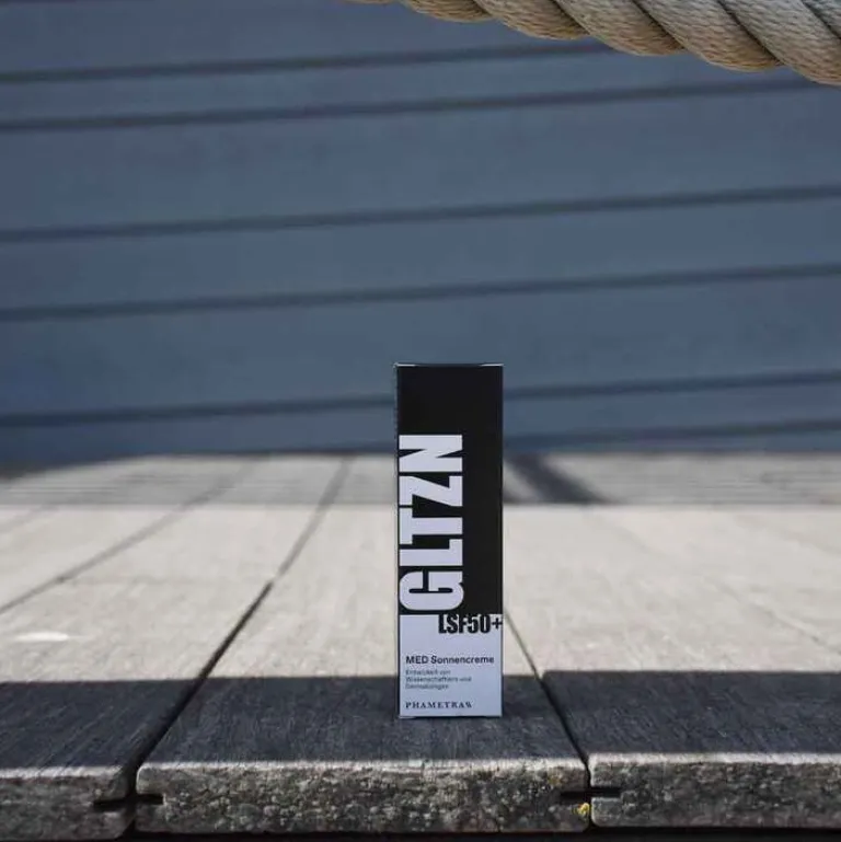 Die Phametra GLTZN Med Sonnencreme ist mit sehr hohem UVA + UVB Schutz. Die Sonnencreme wird empfohlen für ein vermindertes Risiko sonnenbedingter Hautirritationen, wie Mallorca-Akne und Sonnenallergie (polymorphe Lichtdermatose). Sie ist frei von Octocrylenen, Octinoxat und Oxybenzon und konform mit dem Hawaiianischen Riffgesetz.
