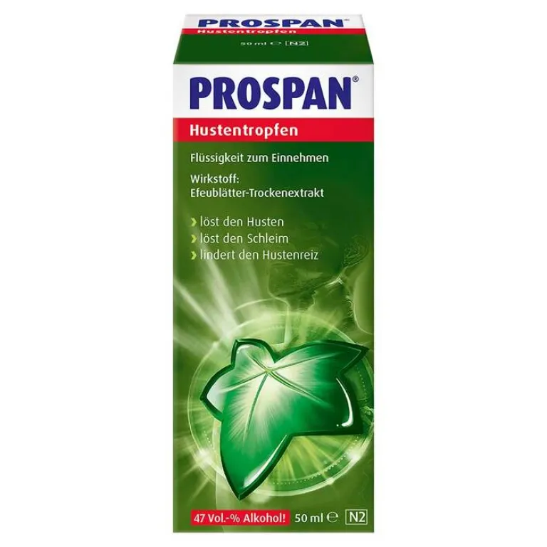 PROSPAN® Hustentropfen, Flüssigkeit zum Einnehmen Wirkstoff: Efeublätter-Trockenextrakt. Anwendungsgebiete: Zur Besserung der Beschwerden bei chronisch-entzündlichen Bronchialerkrankungen; akute Entzündung der Atemwege mit der Begleiterscheinung Husten. Hinweis: Bei länger anhaltenden Beschwerden oder bei Auftreten von Atemnot, Fieber wie auch bei eitrigem oder blutigem Auswurf, sollte umgehend der Arzt aufgesucht werden. Warnhinweis: PROSPAN® Hustentropfen enthalten 47 Vol.-% Alkohol! Zu Risiken und Nebenwirkungen lesen Sie die Packungsbeilage und fragen Sie Ihre Ärztin, Ihren Arzt oder in Ihrer Apotheke. Stand der Information: September 2021. Engelhard Arzneimittel GmbH & Co.KG, Herzbergstr. 3, 61138 Niederdorfelden. Telefon: 06101/539-300. Fax: 06101/539-315. Internet: www.engelhard.de. www.prospan.de. e-mail: [email protected]