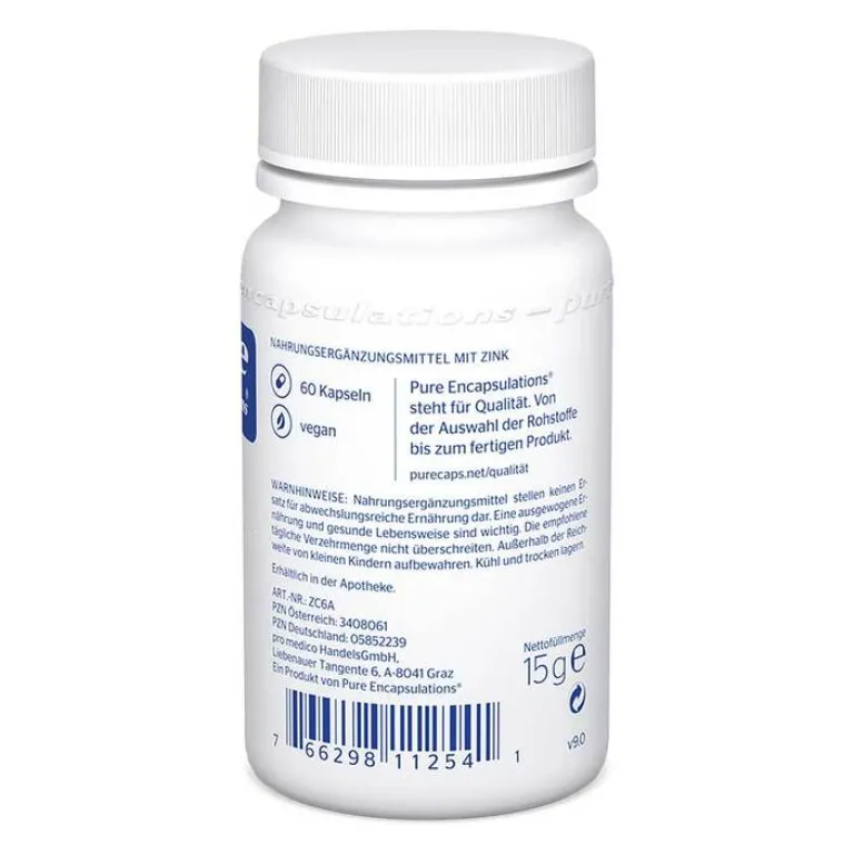 Pure Encapsulations Zink Zinkcitrat Kapseln, 60 St- Zink