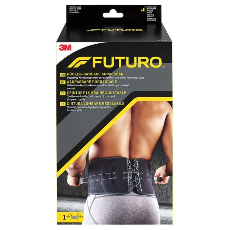 Bringen Sie Ihren Rücken wieder ins Spiel – mit Kompression und Unterstützung durch die FUTURO™ Rücken-Bandage anpassbar. Diese Rückenbandage besteht aus atmungsaktiven Kompressionsmaterialien und stützt den unteren Rücken. Ein anpassbares Doppelkordelsystem und entnehmbare Polster sorgen für eine bequeme, individuelle Passform. Die konturierte Form erlaubt es Ihnen, sich den ganzen Tag über natürlich zu bewegen. Stärken Sie sich den Rücken – mit der FUTURO™ Rücken-Bandage anpassbar.