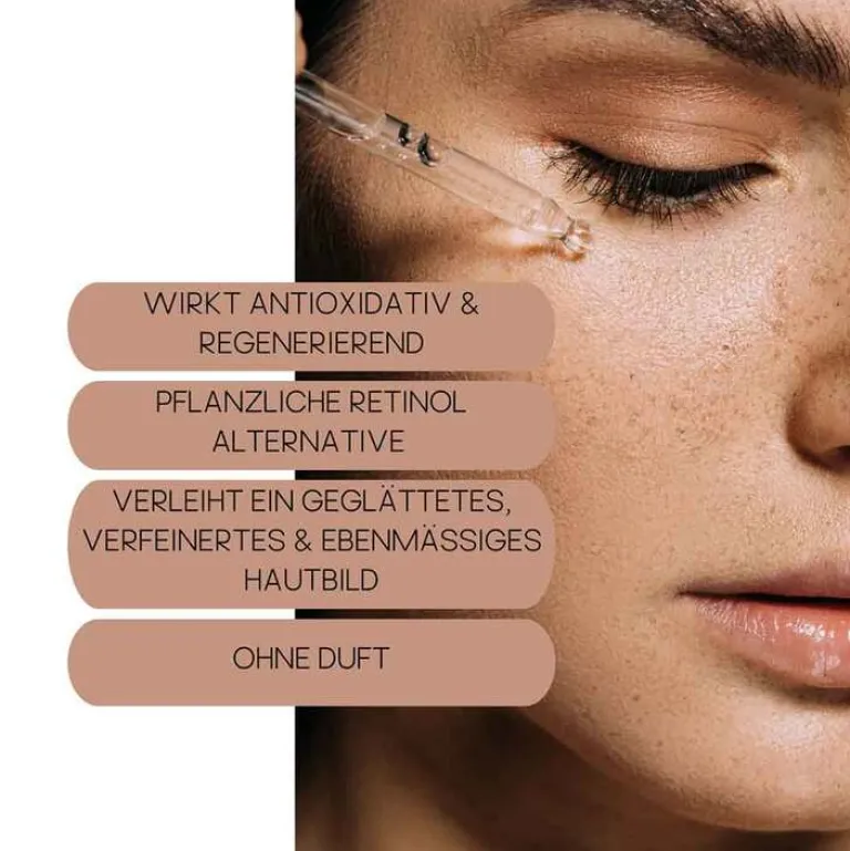Das Serum mit dem Power Wirkstoff Bakuchiol wirkt intensiv regenerierend, versorgt die Haut mit Antioxidantien und verbessert das Hautbild.