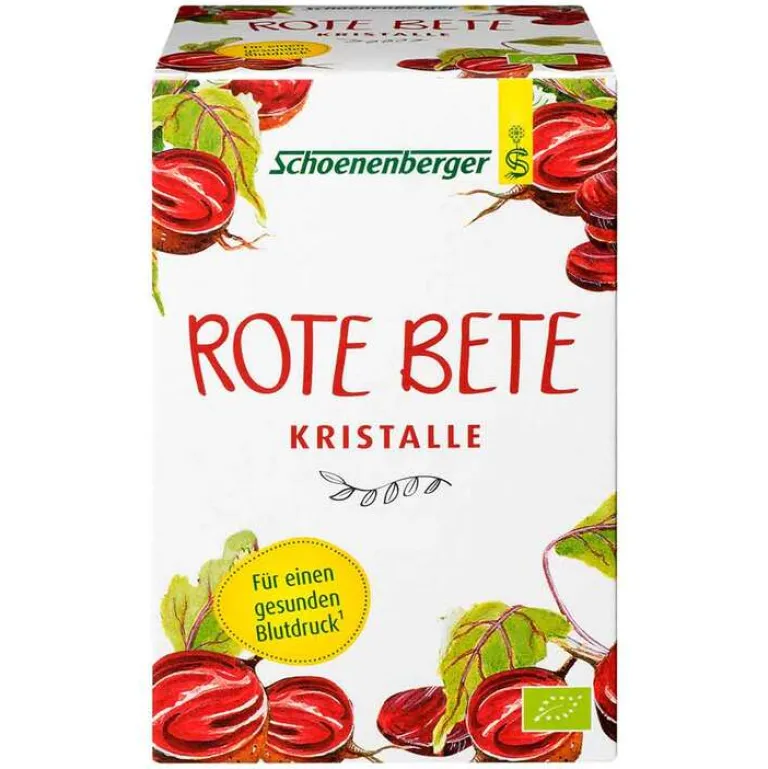 Die Rote Bete Kristalle von Schoenenberger werden schonend im Spezialtrocknungsverfahren aus dem Saft erntefrischer Bio Rote Bete gewonnen – ganz ohne Trägerstoffe. Sie enthalten Folsäure, sind reich an wertvollem Kalium und tragen so zur Aufrechterhaltung eines normalen Blutdrucks bei.*