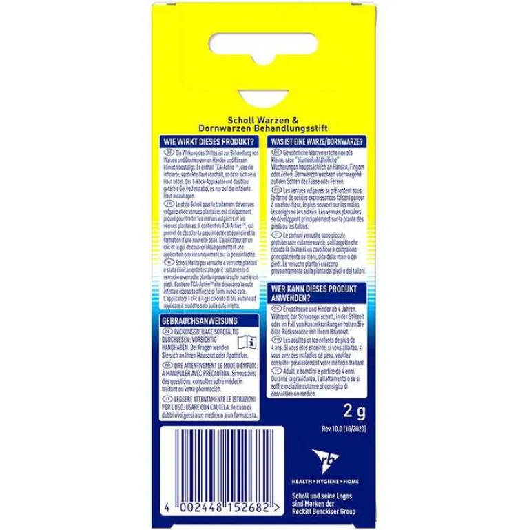 Der Scholl Warzen & Dornwarzen Behandlungsstift ist ein Medizinprodukt zur effektiven und schnell wirkenden Selbstbehandlung und ist klinisch bestätigt zur Behandlung von Warzen und Dornwarzen an Händen und Füssen.