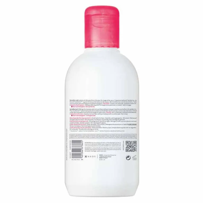 Sensibio Lait reinigt die Haut sanft und befreit sie effektiv von Make-up. Dank des Toleridine™ Patents wird die biologische Widerstandskraft der Haut gestärkt und die Toleranzschwelle empfindlicher und intoleranter Haut gestärkt. Die Reinigungsmilch eignet sich für Gesicht und Augen. Sie ist ohne Abspülen anzuwenden, nicht komedogen und unparfümiert.