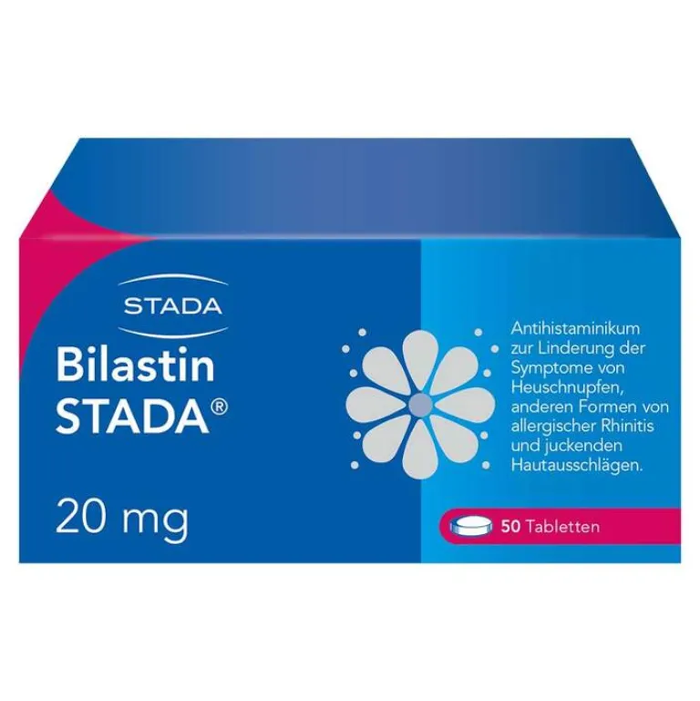 Bilastin STADA® 20 mg Tabletten. Zur Anwendung bei Erwachsenen und Jugendlichen ab 12 Jahren Wirkstoff: Bilastin. Linderung der Beschwerden von Heuschnupfen (Niesen, juckende, laufende, verstopfte Nase und rote und tränende Augen) sowie anderer Formen allergischer Rhinitis. Es kann auch angewendet werden, um juckende Hautausschläge (Nesselsucht oder Urtikaria) zu behandeln. Hinweis: Überschreiten Sie die empfohlene Dosis nicht. Zu Risiken und Nebenwirkungen lesen Sie die Packungsbeilage und fragen Sie Ihre Ärztin, Ihren Arzt oder in Ihrer Apotheke. STADA Consumer Health Deutschland GmbH, Stadastraße 2–18, 61118 Bad Vilbel Stand: Januar 2025