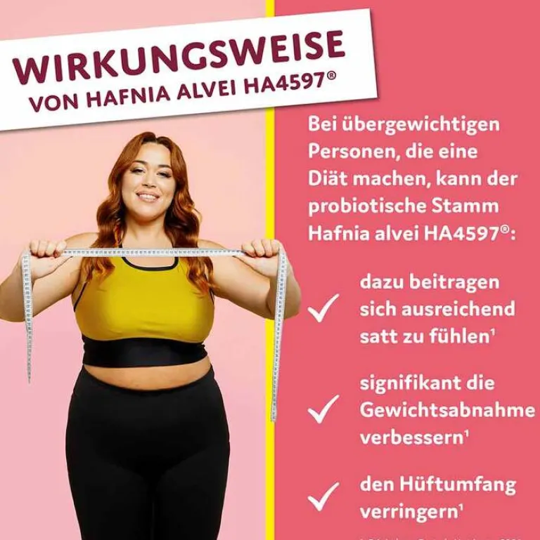 - Nahrungsergänzungsmittel mit dem speziellen Bakterienstamm Hafnia alvei HA4597 und den Mineralstoffen Zink und Chrom